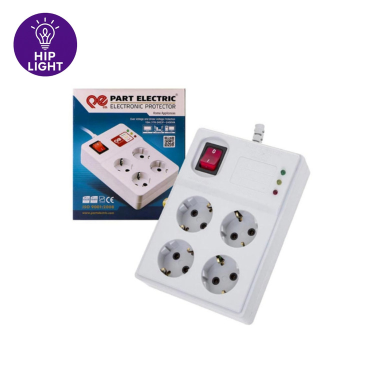 محافظ ولتاژ برق چهار خانه ی پارت الکتریک دارای 24 ماه ضمانت تعویض شرکتی در سه اندازه ی مختلف سیم