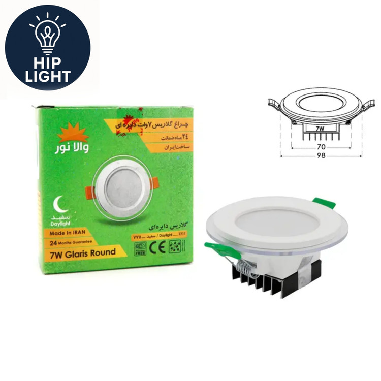 پنل هالوژن ۷ وات گلاریس دایره ای پارس شعاع توس